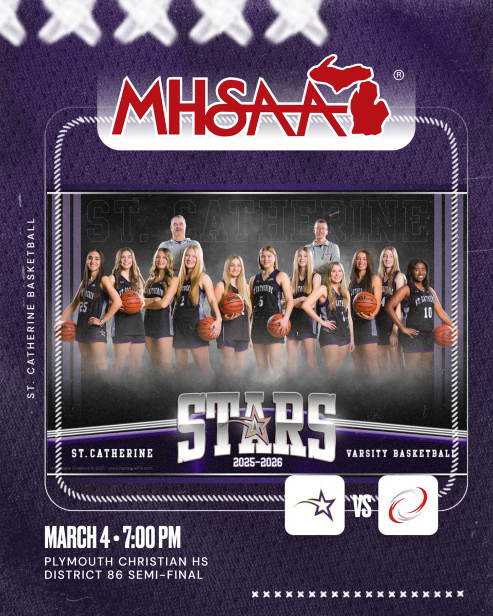 Good luck to our basketball team as they compete for the MHSAA District Crown. The Stars travel to Plymouth Christian to take on the Eagles. Come out and support your Stars for their pursuit of a district title! 🏆